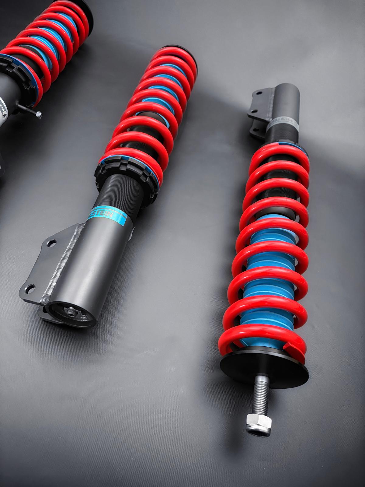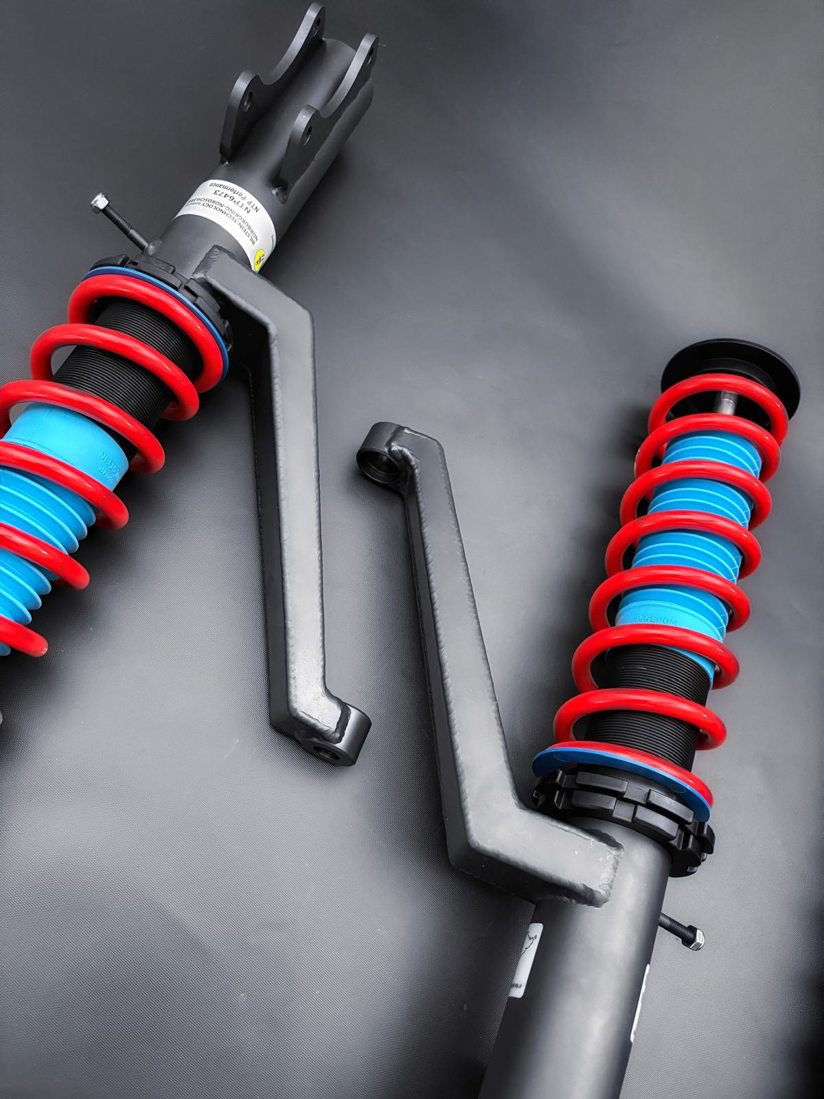Bilstein Shock absorbers replica of the original damper but with sporting-road adjustment, including Eibach springs for more comfort on rough roads but with less body roll and better traction in comparison to the original.