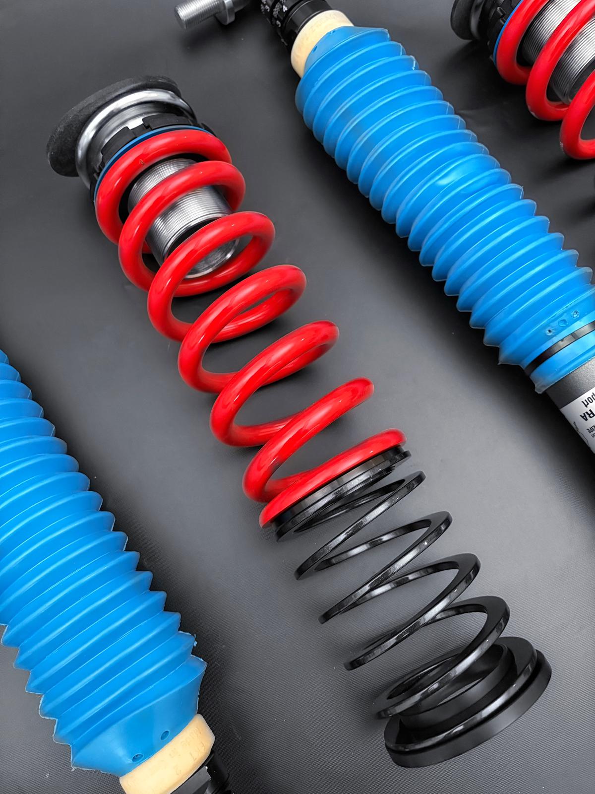 The setups are plug-and-play, consisting of Bilstein shock absorbers, Eibach springs and mounting plates. There is also the possibility of adjusting the front camber.