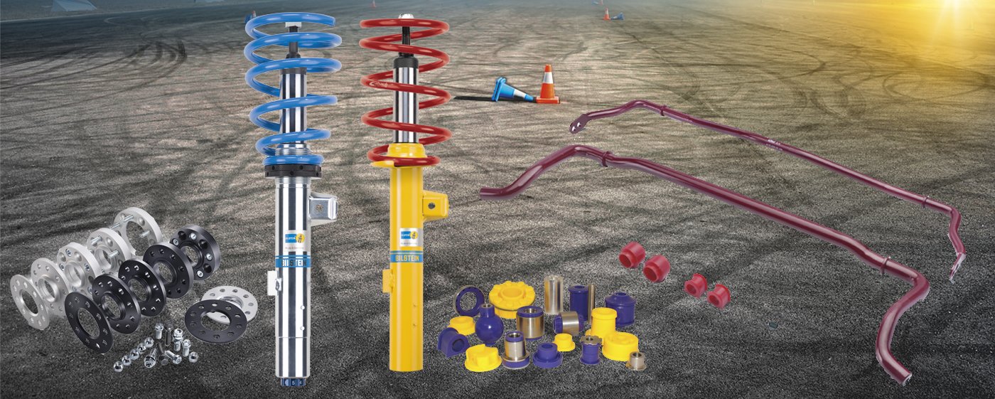 Eibach springs and spacers, Bilstein shock absorbers, K&N air filters, BBS alloy wheels, Remus sports exhausts, Foliatec sprays and accessories for individual car motif styling, Eco Power Chip the smallest chipbox in the world, Powerflex polyurethane inserts, and Lithiumax ultra-light batteries. Westfalia towbars, Pedalbox fast response system and, Soundbooster V8 sound for your car. Zimmermann, brake discs and SACHS Performance – clutches. Wiechers Sport strut bars and Ultra Racing under car braces